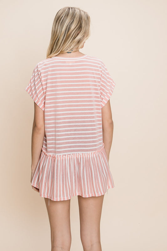 Cotton Bleu by Nu Label Striped Ruffled Short Sleeve Top